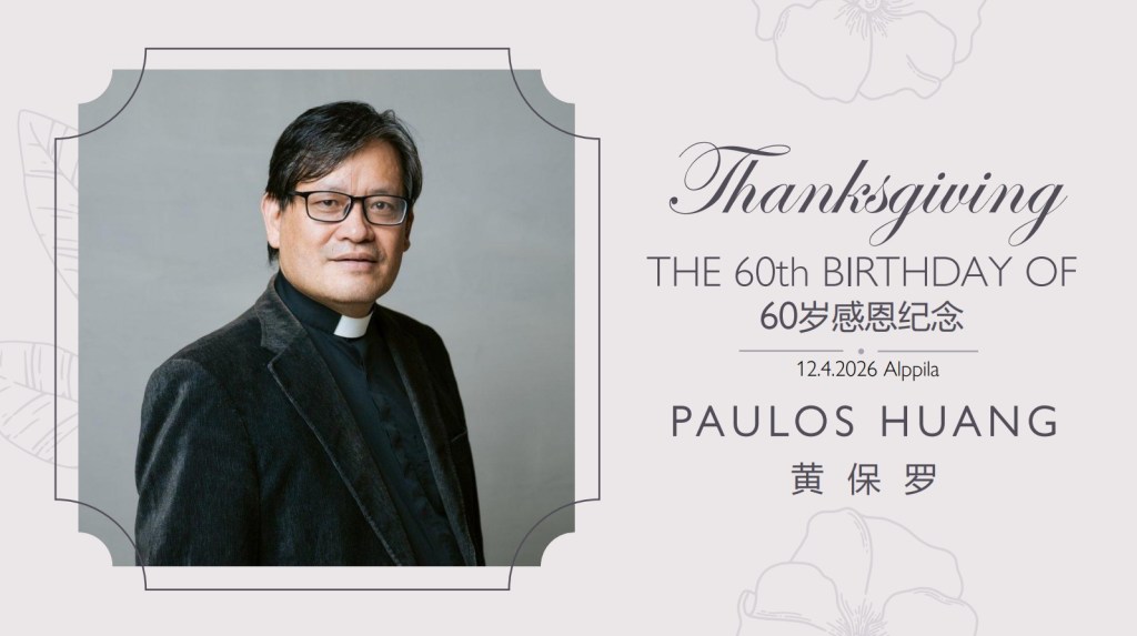 10月5日中秋节,信义会华语教会在Alppila教堂举办了中秋礼拜音乐会。华语平安诗班、Valo儿童诗班及芬兰Jippi诗班将齐声敬拜。愿主的灵继续在芬兰华人中运行,让我们在庆祝中秋家庭团圆的同时,也彼此建造,成为神属灵大家庭中的一份子。