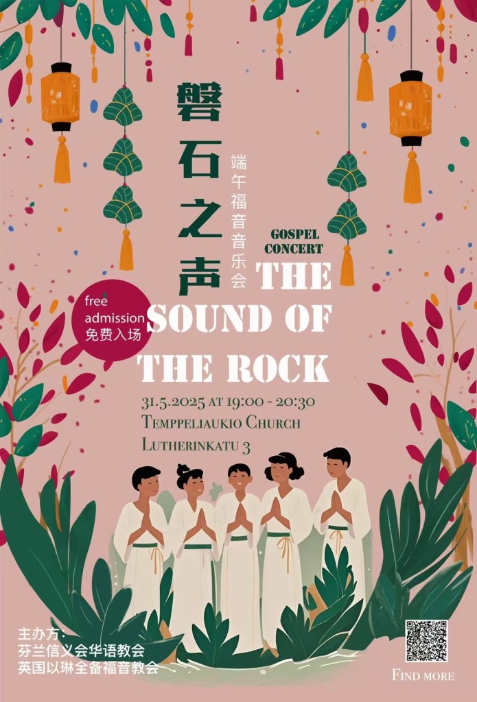 正值端午佳节,在2025年5月31日我们举办了「磐石之声」端午华语福音音乐会,并送出了手工制作的「传统粽子」给华人和当地国外友人们。与大家在欣赏音乐会的同时也体验中国传统文化,一起共度一个美好的端午时光。直播录像已经发布。欢迎重新欣赏乐队和诗歌班献给上帝的优美音乐,再次感受内心的平安与喜乐。