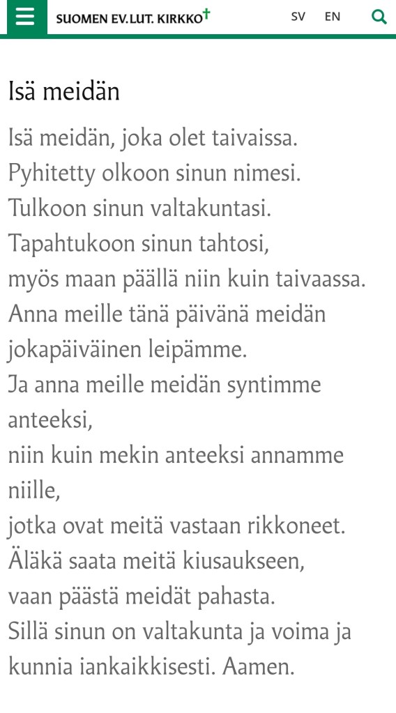 芬兰语版主祷文(isä meidän rukous)